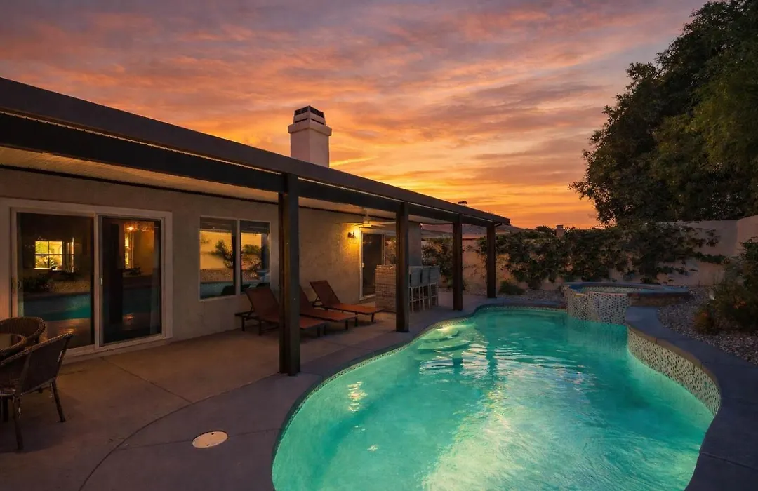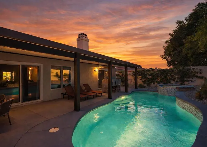 La villa Navigate Stays Luxe Retreat W Pool Spa & Games est équipée d'une bouilloire électrique, d'un réfrigérateur et de la vaisselle dans une cuisine équipée. Les clients sont invités à dîner au Sloan's Restaurant, situé à seulement 1 km. L'arrêt de bus Indio - JFK Medical Center se trouve à une courte distance de cet hébergement. L'hébergement offre une piscine privée sur le territoire, ainsi que la possibilité de participer à un cyclisme.